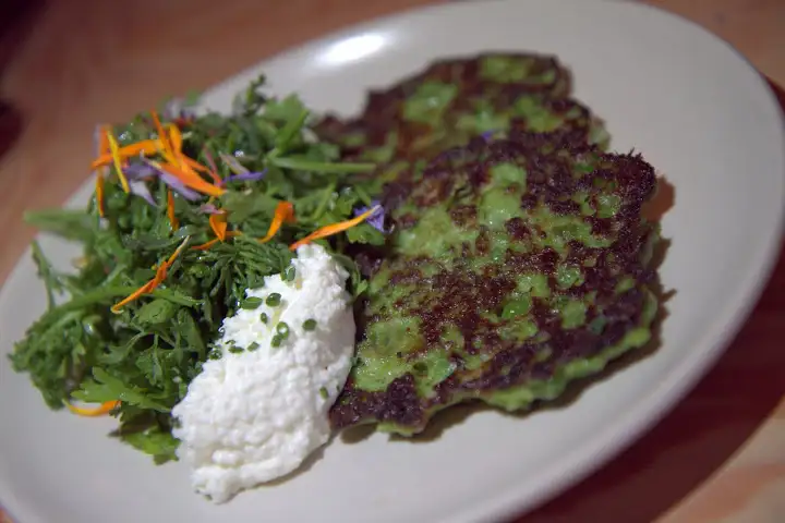 Firefly's fava pea pancakes
