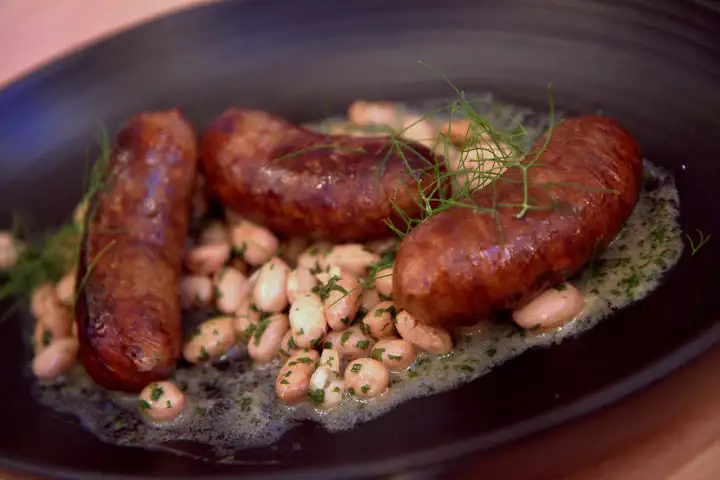 Highlights were many at the preview dinner, including a comforting burnt honey ice cream and flaxseed granola dotted with summer berries, or fried smelt and cucumbers over whipped buttermilk. But it just may be grilled Luganica sausage that everyone kept talking about: plump, juicy perfection over shelling beans, beautiful paired with Gavroche French Red Ale.