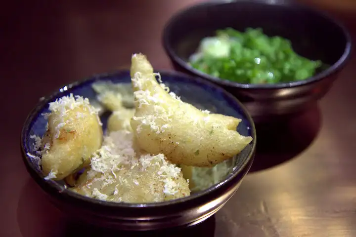 Highlights are numerous, including salty, steamed bao de bacalao ($12), essentially salt cod and potato bao buns (think Spain/Portugal meets dim sum), or Taiwan Night Market-style “fried chicken yum yum snack” ($13), where tender chicken cubes are accompanied by 5-spice salt and aji Amarillo powder.