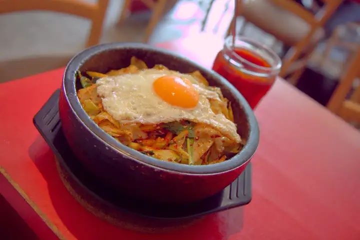 And yet, a filling bowl of bulgogi beef bimbimbap (€8.50), was not only sheer comfort with gojuchang hot sauce, actual heat being difficult to find in spice-averse Germany, it was a welcome change of pace here.