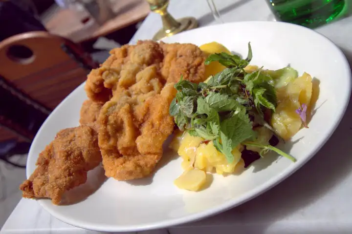 With its elegant, Old World-meets-New World dining room and casual cafe/bar space, Jolesch (open since 1992) is one of Berlin’s great stops for Austrian food, namely their famed Weiner schnitzel. Transporting me back to Austria, their schnitzel is properly done with large cuts of veal, pounded flat, perfected with a squeeze of lemon and their dill-laced potato and cucumber salad. They also serve generous, fresh salads and Kaiserschmarrn, a classic Austrian dessert of fluffy, torn pancake with plum sauce.