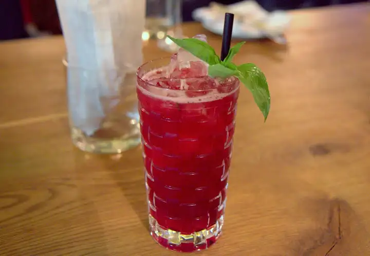 One cocktail delighted of the few I tried — blessedly German in its profile: Kolhmanns (€9) combined Buckenhoff Weizen beer, edelkorn (a type of German schnaps or brandy), Green Chartreuse, basil, citrus and Angostura bitters. It’s rosy and bright on the rocks doused with Johannisbeersaft (currant juice).