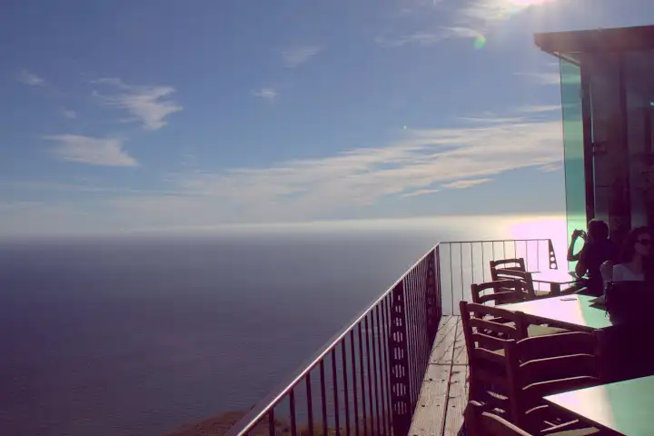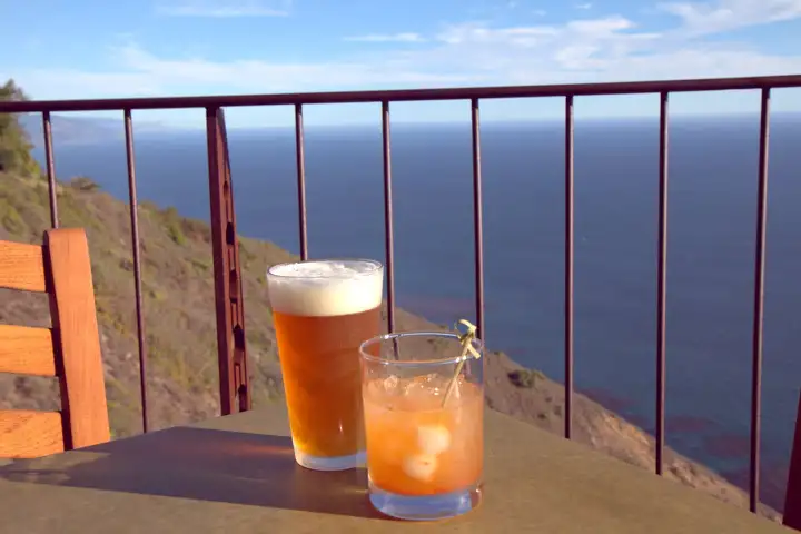 Luxurious sunset: sipping beers and cocktails (generally $18 each) from the Sierra Mar with that breathtaking cliffside view.