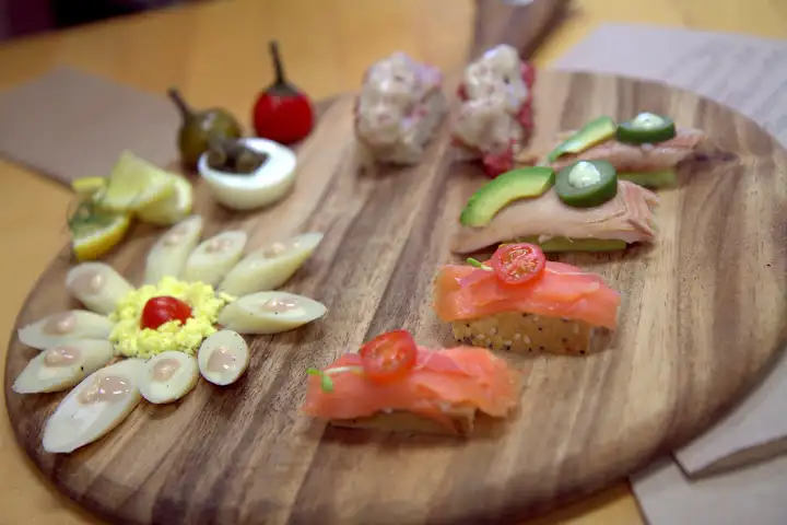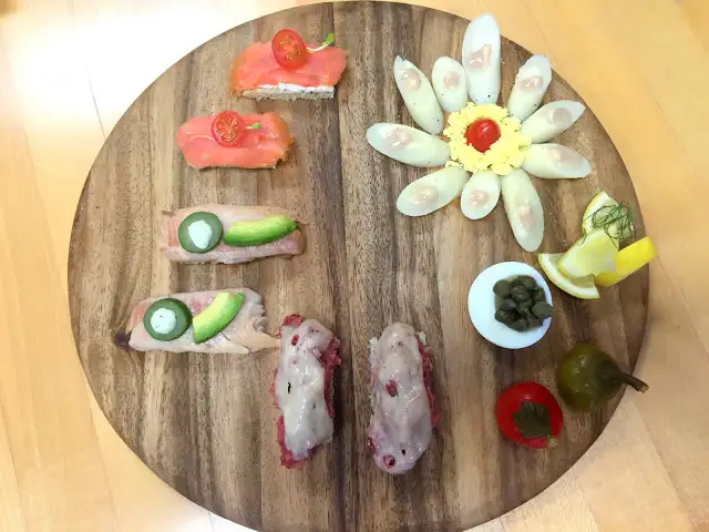 Especially fun was owner Adam Mesnick’s off-menu “Jewshi”, essentially a sushi-style platter of mini-sandwiches and bites, showcasing pastrami to trout, eggs to hearts of palm, in nigiri-esque form. Mazel tov!