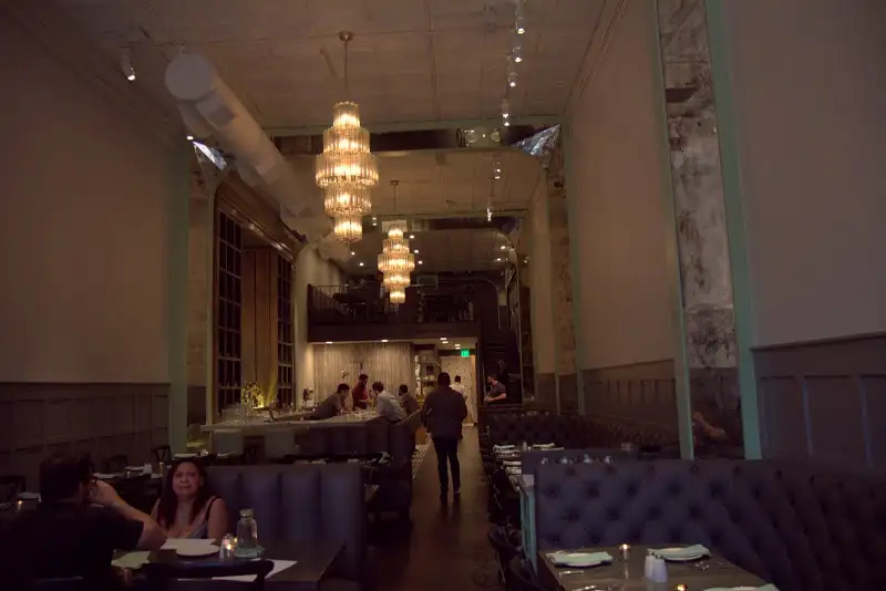 Bar manager Brad Bowden runs the bar with a gracious, understated spirit (under executive bar manager Mate Hartai), turning out good-time drinks like non-alcoholic RX Cream Soda ($5) — sarsaparilla, birch bark, wild cherry bark, vanilla — and Dew! ($5), a house honeydew melon soda with dried apricot. On the alcohol-free side, I appreciated the refreshing-creamy Orange Lazarus Orgeat ($5), basically fresh orange juice and zest with house cashew orgeat.