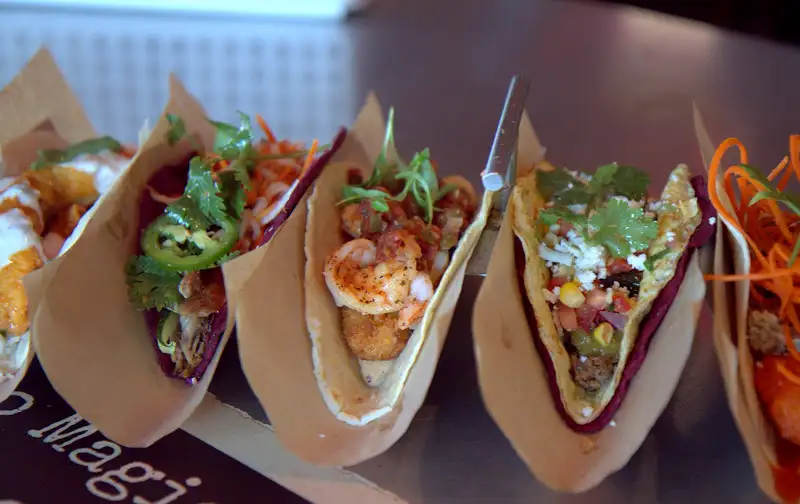 Their rotisserie corn/elote taco ($3.75) is a house favorite, laden with roasted corn shaved off the cob, queso fresco, Valentina hot sauce, crema and lime. And while the crisp tikka chicken masala or Israeli couscous tacos were cool in concept, the most realized — and delicious — is the shrimp and grits taco ($5.75), packed with blackened shrimp, crispy pepper jack cheese grits, charred tomato poblano salsa, Creole mayo and micro cilantro on a corn tortilla. They also do right by the ubiquitous Texas breakfast taco ($3.95) packed with egg frittata, shredded barbacoa Wagyu beef, corn, queso fresco, salsa verde and cilantro on a vivid, purple hibiscus corn tortilla.
