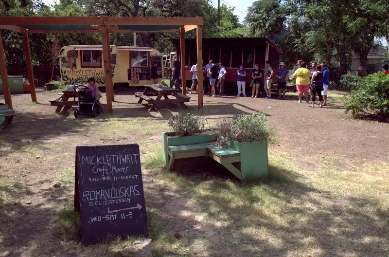 The two best were food trucks, naturally (this is Austin, after all). Micklethwait Craft Meats was hit-and-miss for me as I tried a range of meats from pork shoulder and sausage to barbacoa (lamb). Even the sides didn’t taste as great as they sounded, like a too-dry lemon poppyseed coleslaw. If it weren’t for the brutal heat, the wild lawn and picnic table setting appealed, like eating in someone’s backyard (note: the neighboring trailers is Micklethwait owners’ deli meats newcomer, Romanouskas). The highlight ended up being brisket Frito “pie”: fatty cuts of beef brisket over a pile of Fritos, sour cream, jalapenos and red onions. There was a line (about 15 minute wait) before opening on a weekday.