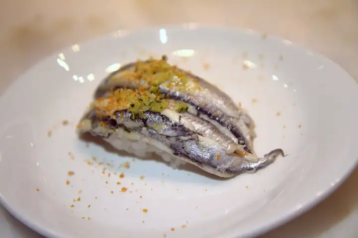 Highlights are many off a la carte and omakase tasting menus. Beausoliel oysters ($4 each) are perked up by apple cider vinegar foam and apricot cubes, while a hirame (fluke) crudo special ($22) was silky in a white soy ponzu sauce and basil oil, bright with myoga (Japanese ginger). Maki/rolls are no throwaway, like hotate (scallop) maki in white paper ($15), savory with leek puree, vivid with watermelon radish and chili oil.