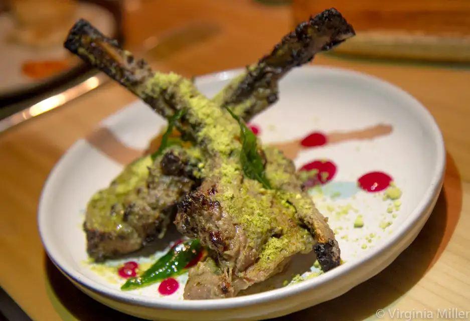 Chef Tyagi’s inspired textures impart a refreshing brightness to many a dish, including excellent, savory bison keema ($14), all ground meat and caramelized onion comfort scooped over tomato house-baked pao (roll-like bread). There is also chaat, hearty biryanis, a gol guppa flight ($8), basically a play on pani puri with five flavored waters to pour over the crispy shells, as well as naan and samosa trios ($9 each).
