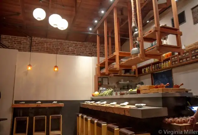 EAT THIS: The intimate restaurant area, with 20 seats, is warmly lined with wood and exposed brick, as chef George Meza (previously of Oro, Ame, Urchin Bistrot) brings NorCal and Japanese seasonality together in his refined but comfort-centric dishes, all under $17 with plenty of skewers and small dish options for bites with tea.
