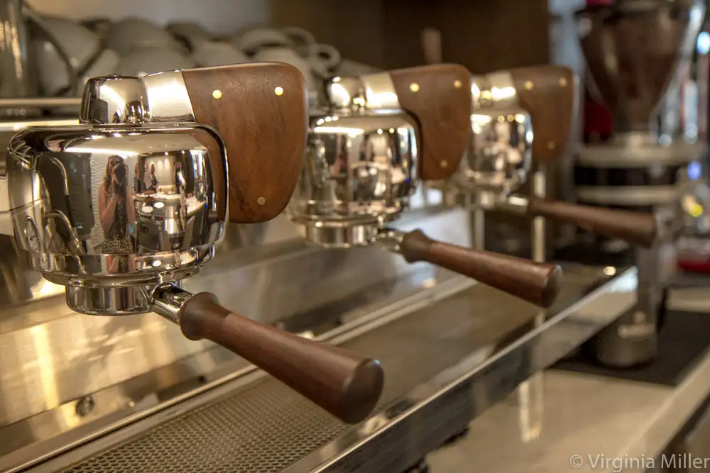 At the new [esc] in the lobby, there is a rare, state-of-the-art Slayer espresso machine, the cafe staffed by experienced baristas who use it properly to craft espresso, cappuccino, macchiato, ideal with house-baked pastries (they use Italian-style, Seattle-based Caffé Umbria coffee beans). I also appreciate that the cafe stocks a few quality bottles, like nut milks and juices from CAN CAN in San Francisco and Juice Served Here cold press juices from LA.