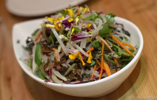Vegetables are a bright reflection of the season, whether a Chrysanthemum Ten Ingredient Salad ($12), a mountain of seaweed, cilantro, bean sprouts, jicama, carrot, or one of the seasonal market vegetable dishes like delicately crisp and perfect snow peas, lily bulbs and black mushrooms ($16) in a light, umami-laden abalone sauce that threatens to “steal the show.” Splurge on 2 1/2 lb. live Maine lobster Cantonese-style or Sichuan fermented rice and chili-style ($60 each).
