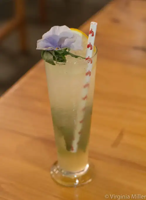 Trying most of the first cocktail menu at Bar Central downstairs (drinks are available at the bar or in the Market Restaurant), initial favorites include Shanghai Kelly’s Bad Bad Pisco Punch ($13) — showcasing Duggan’s Encanto Pisco (I made pisco with Encanto in Peru in 2013) and Plantation Pineapple Rum — in San Francisco’s ultimate classic cocktail, the Pisco Punch. Here, it’s given a colorful spin with a touch of blue curacao, an Asian angle with gunpowder green tea, balanced by fresh lime and pineapple, orange bitters and a splash of ginger beer. In addition, the peppermint, yerba maté herbaceousness of Honey On the Southside ($13), a twist on a classic Southside cocktail, is a refresher of Apóstoles Yerba Mate Gin, lemon, matcha tea honey, muddled peppermint and basil, topped with seltzer.