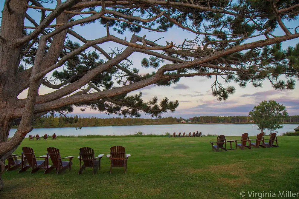 The MacMillan Dining Room at Dalvay on the lawn at sunset