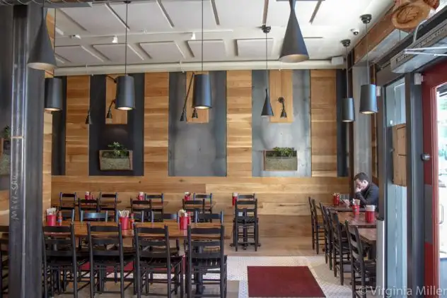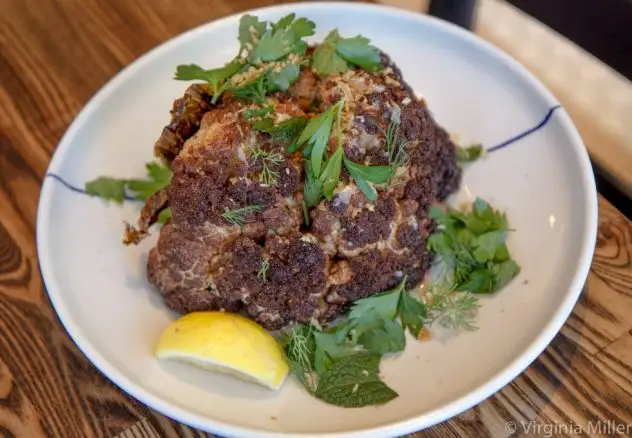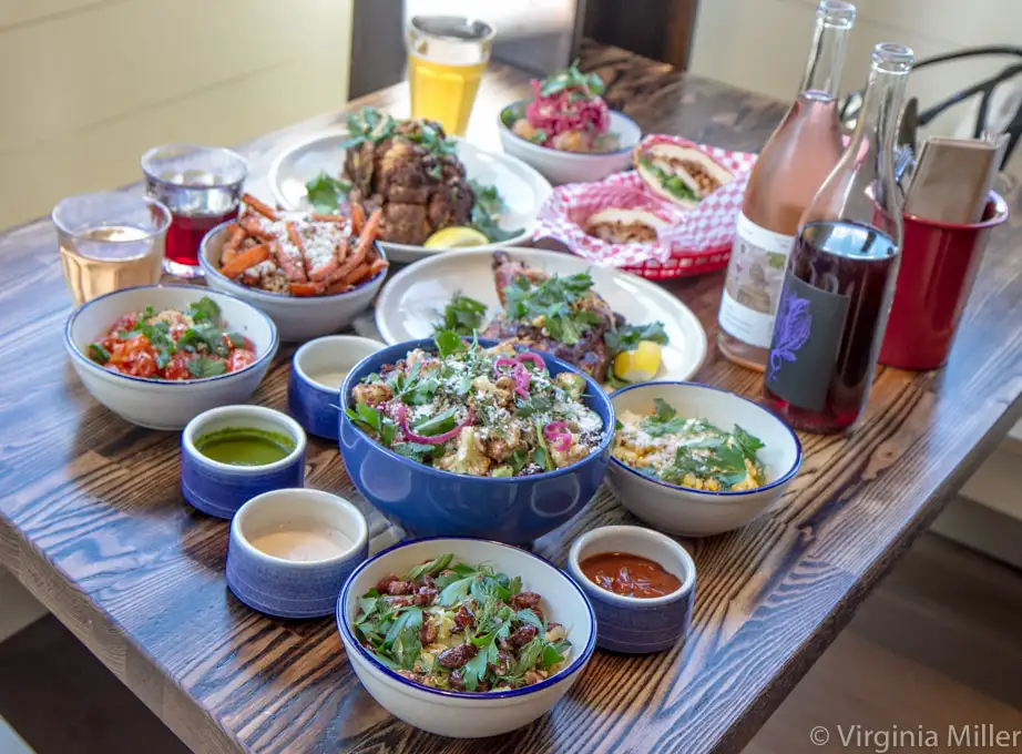 But that whole grilled cauliflower served steak-like or on a sandwich with beet hummus, threatens to steal the show. So does a surprisingly fantastic charred cabbage and almond salad. Ditto unique sauces like Douglas fir sour cream or a vibrant chimichurri of local herbs. There is plenty for food lovers here, top-notch considering it’s an easy take-out joint.