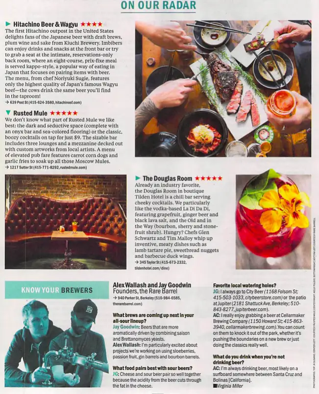 For those not in the Bay Area, here are links to each article and a peek below at the July 26th magazine, including my TO reviews of new restaurants and bars: