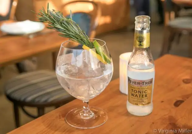 They go Spain-style on the gin & tonic menu ($13 each) serving g&ts in goblets with fruit and herb garnishes, grouping gins (small and large brands) under four groupings of “classic”, “earth”, “fruit” or “botanical” with five tonics to choose from.