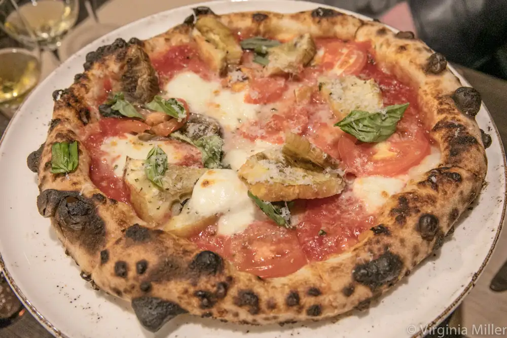 Cento Osteria’s Parmigiana Pizza with tomatoes, mozzarella, eggplant, oregano, basil, Parmigiano-Reggiano cheese