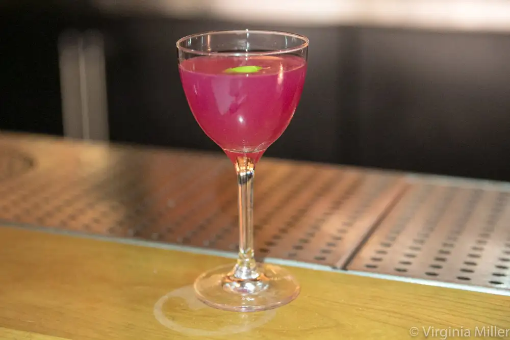 Linden Room’s Forbidden Fruit cocktail (vodka, prickly pear, genepy, lime)