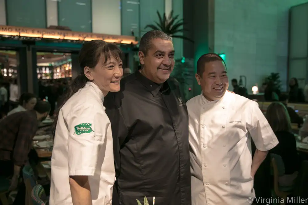 Michael Mina (center) with Honolulu-based husband-and-wife team Michelle Karr-Ueoka and Wade Ueoka of MW Restaurant in Honolulu