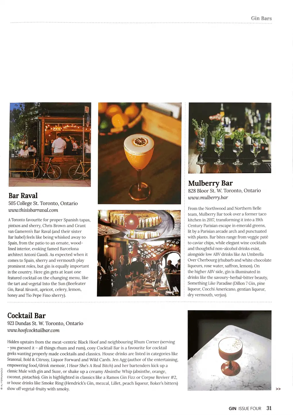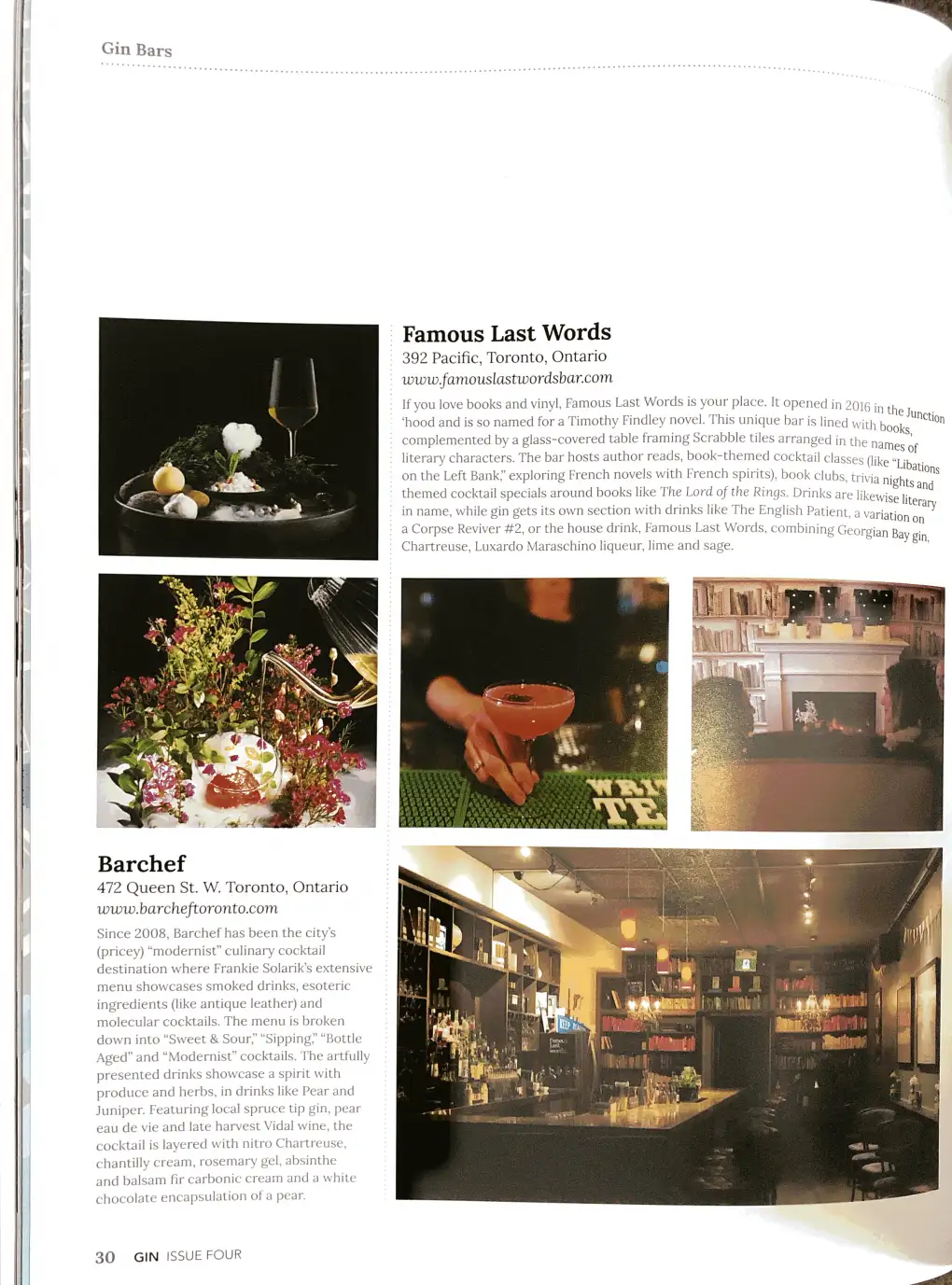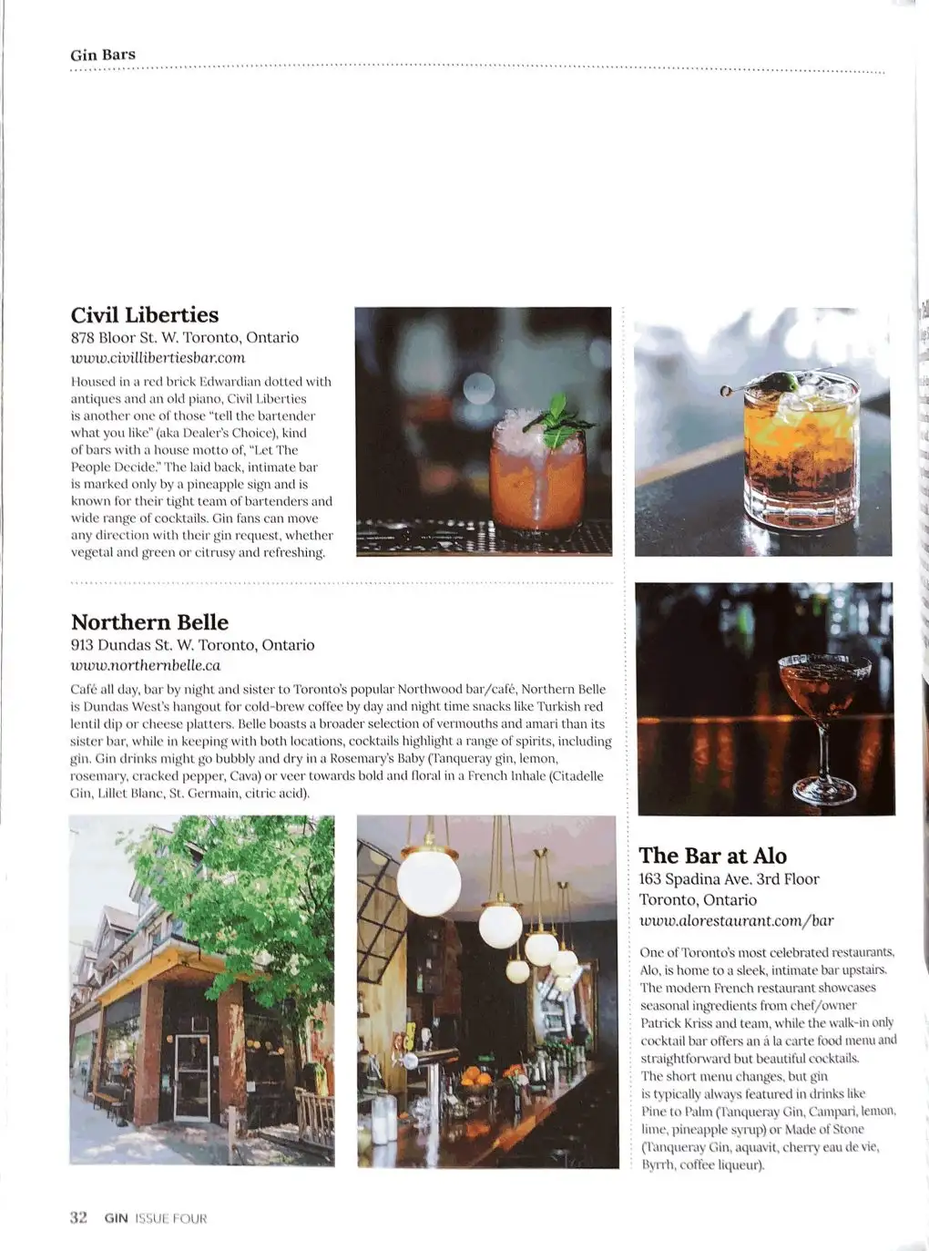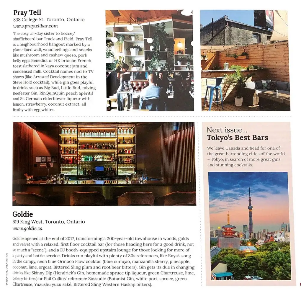 My latest print feature in Gin Magazine (from the publishers of Whisky Magazine, which I have also written for here) is on 10 top Toronto bars that do right by gin — article here.