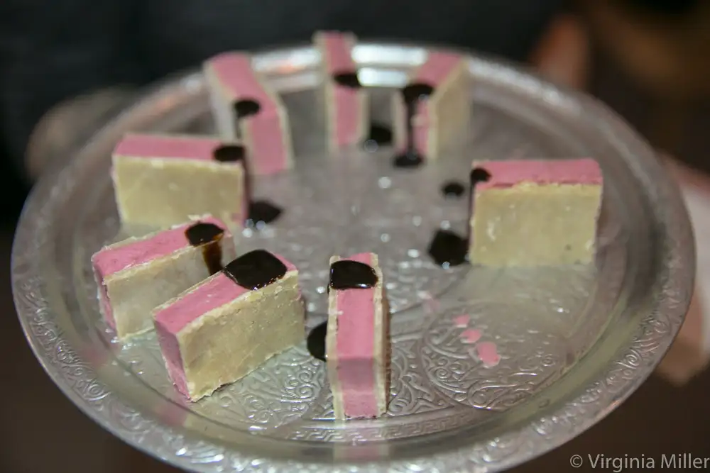 Drink This: Bar manager Julien Bertrand (formerly at Frida in Bordeaux, France, Bar Fluxus in SF, Michel Bistro in Oakland) crafts subtle drinks, the most balanced we tasted being True Romance (dark rhum, braised pineapple, vermouths, amaro, coconut, golden beet with dehydrated beet garnish). Wine director Brian Kulich delights with over 100 wines by the glass, thanks to a Coravin, including particularly savvy California wines to please the Old World wine lover (like a lean, Chablis-esque Fort Ross Seaview Charles Ranch Chardonnay from the Sonoma Coast (shockingly part of the Mondavi portfolio) or the balanced acid and fruit of a 2014 Porter Creek Syrah from Sonoma.