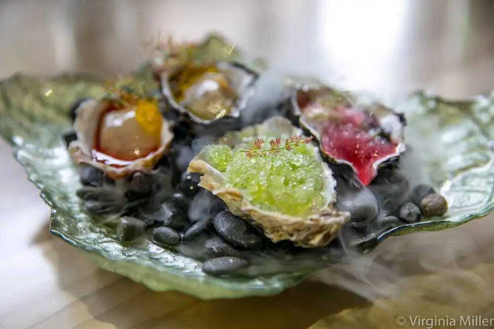 Pro Tip: Ok, it’s still a tasting menu, but abbreviated. A 5-course menu ($175) is now available Wednesday, Thursday and Sunday evenings for those wanting to try out chef Anderson’s cooking without going for the full 8-course menu. Menus always evolve but you might start with warm gougeres oozing leeks, black pepper and nutmeg, then move on to an oyster custard with horseradish and borage covered in tomato water ice.