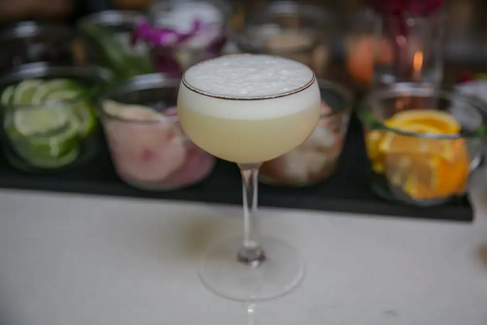 An 1832 Creole cottage houses one of Nola’s oyster bar and cocktail treasures, Seaworthy, focused on sustainably sourced seafood in chef Justin Koslowsky’s dishes (think crawfish rolls or anchovy toast). Beverage director Matt Ray created The Holy Water as their flagship cocktail, served tableside in a custom tarot glass from local shop, Flambeauxs. They steep Hamilton Jamaican Gold rum in-house with golden raisins, orange peels, vanilla bean, cinnamon, clove, nutmeg and other spices. Shaken with Maison Rouge Cognac, lemon, lime and grapefruit juices, the drink gains yet more spice from a float of Angostura bitters. A half lime garnish filled with Green Chartreuse and a sugar cube is then lit tableside, caramelizing the sugar and releasing aromas of citrus, herbs and spice.