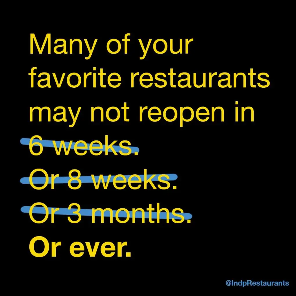 Big business already dominates, gaining while America suffers. With profits to weather setbacks if they wanted to, they can also buy politicians’ favor. The corruption of some (certainly not all) big businesses is obvious. So let’s get a couple small business/hospitality industry misconceptions out of the way: independent restaurants make little-to-no profit in the best of times. Normally, it takes a couple years to open a restaurant, given the permitting, financing, legal, insurance and government hoops they’re forced to jump through. Government could actually aid small business by minimizing red tape, excess fees and onerous laws. Restaurant investors were already rare in this no-profit, low-survival game. Mom-and-pop shops, often run by POC (people of color) have even less of a chance (that’s another article entirely, I’d like to write — and one of my biggest fears in our cultural loss).