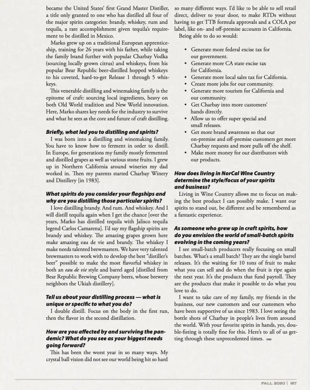 - My interview with Charbay distiller Marko Karakasevic in Ukiah and Napa below and online