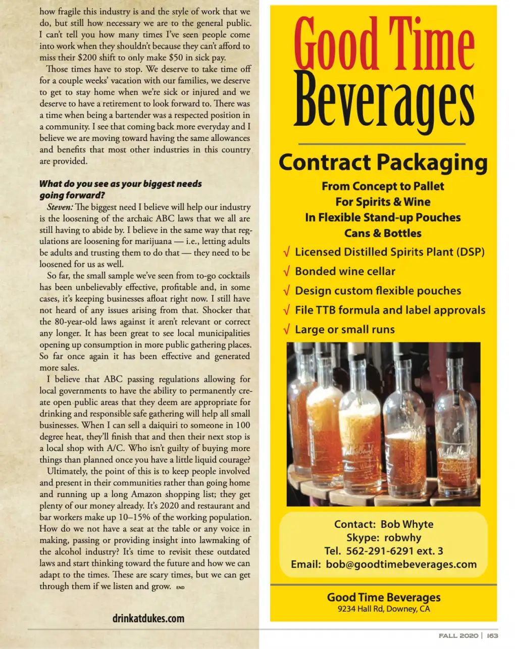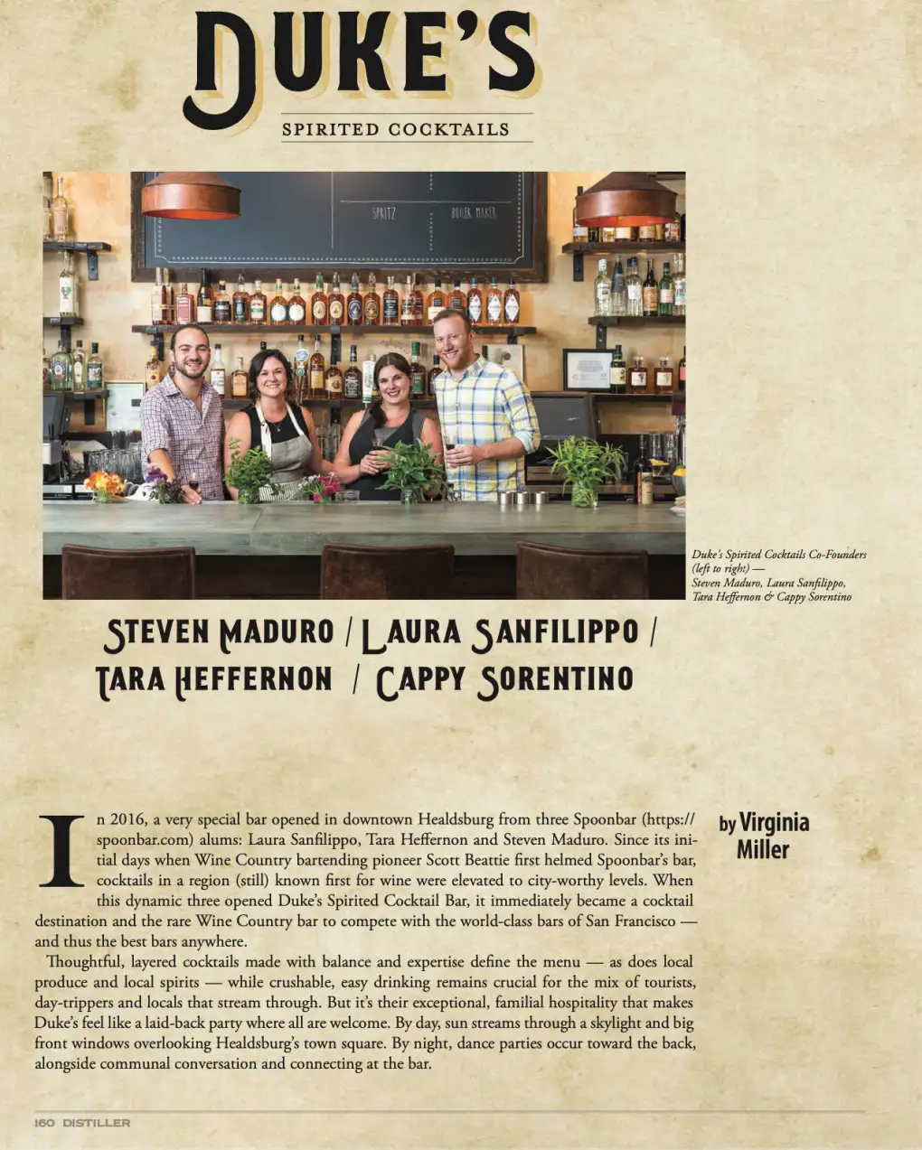 - My interview with all four owners and bar managers of Duke’s Spirited Cocktails in Healdsburg (Sonoma County) below and online