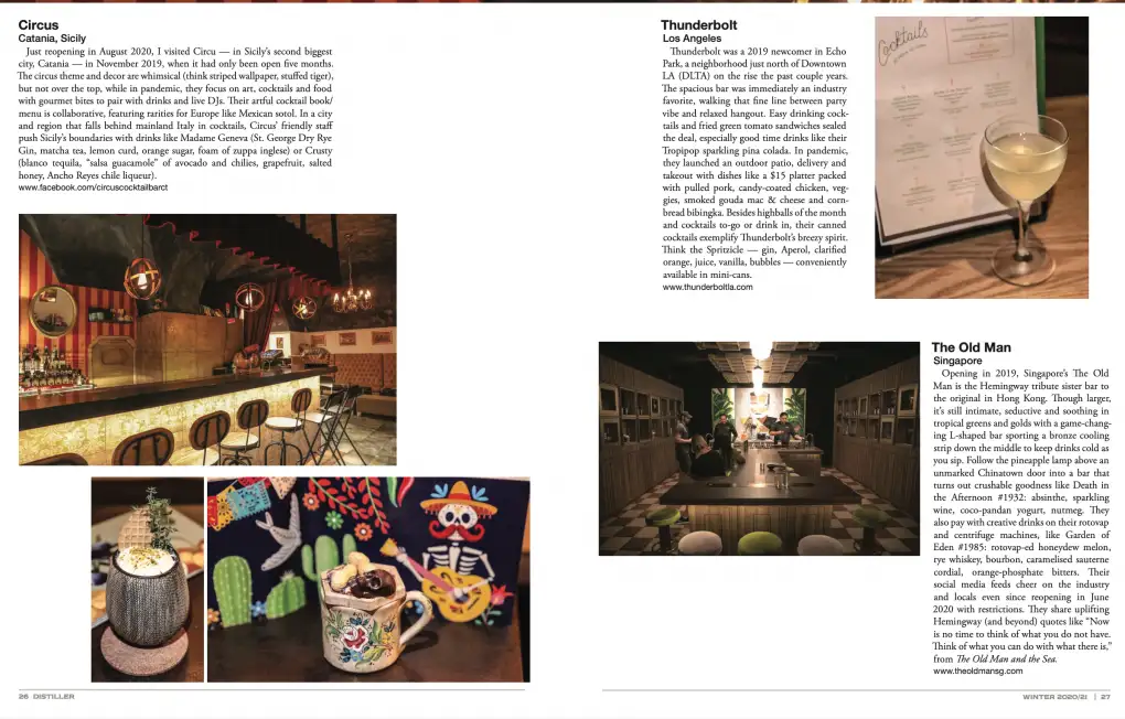 - My article on 10 of the world’s best bars and how they are surviving and recreating in pandemic below and online