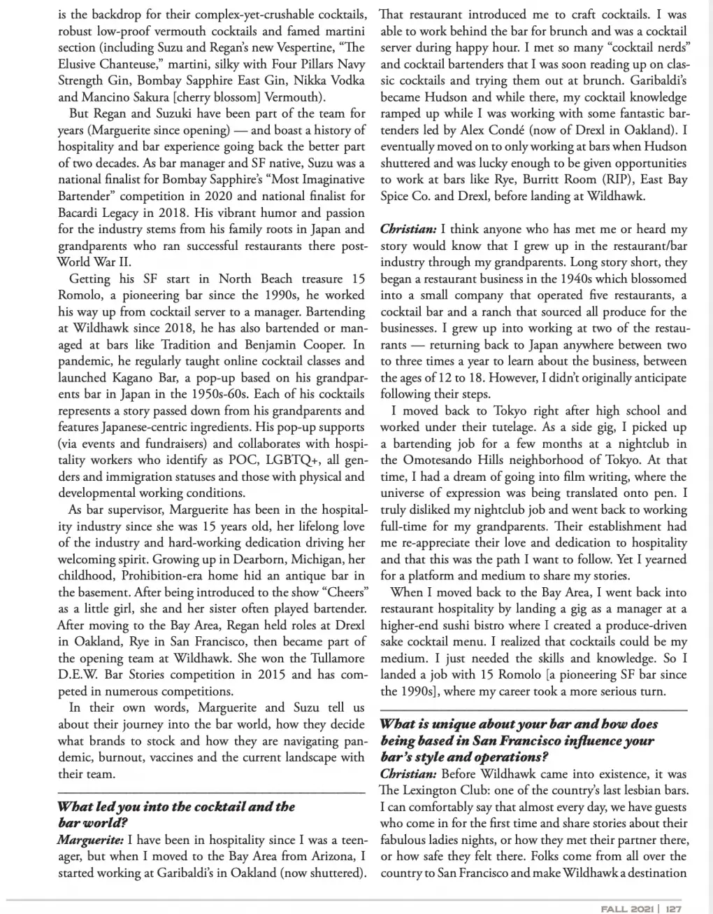 - My interview with Wildhawk bar managers Christian “Suzu” Suzuki & Marguerite Regan below (online here)