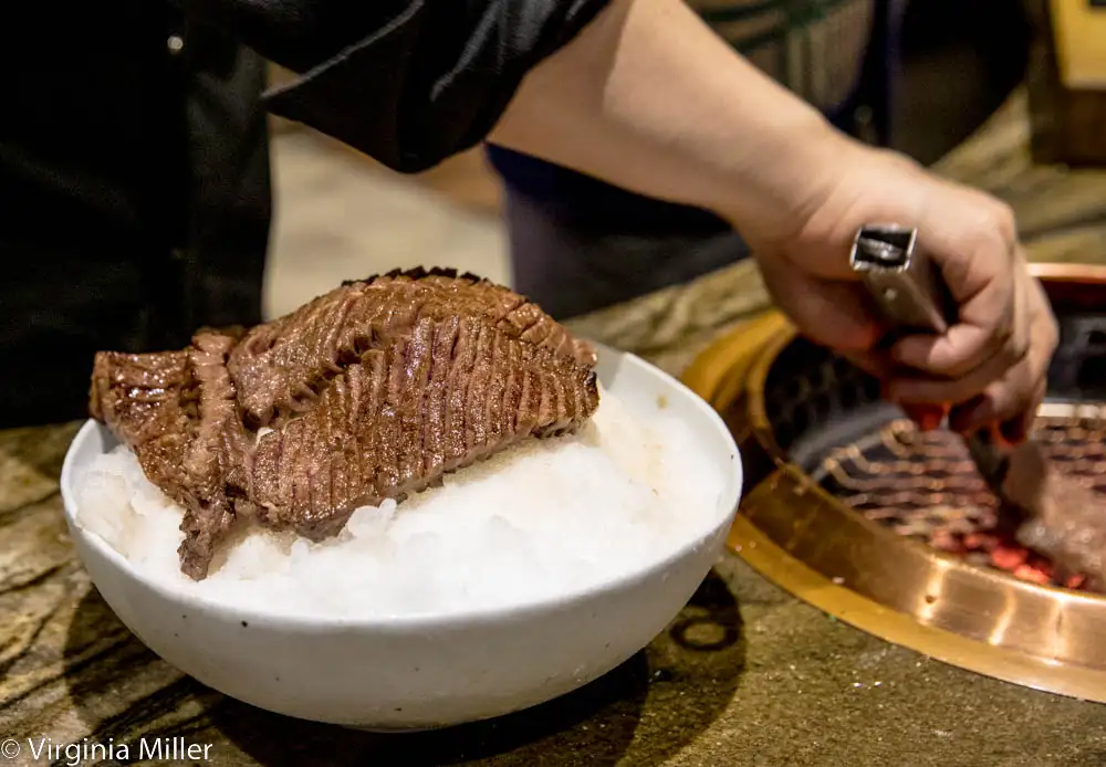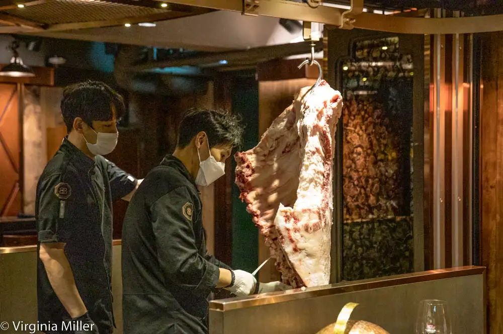 Eating raw beef off the side of a cow from butcher and Korean beef fine dining, Born and BredBorn and Bred‘s hot and icy cold seolyamyeokjeok, an ancient techniqueByeokje Galbi‘s jeolliptu “fighter’s helmet”-style grilling