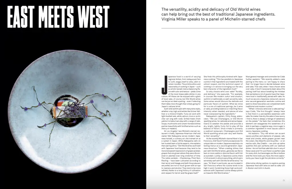 Including my interviews with the chefs and sommeliers of Los Angeles’ 2 Michelin-starred n/naka (Niki Nakayama) and San Francisco’s 1 Michelin-starred Nisei (David Yoshimura).