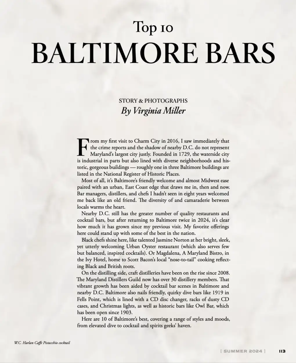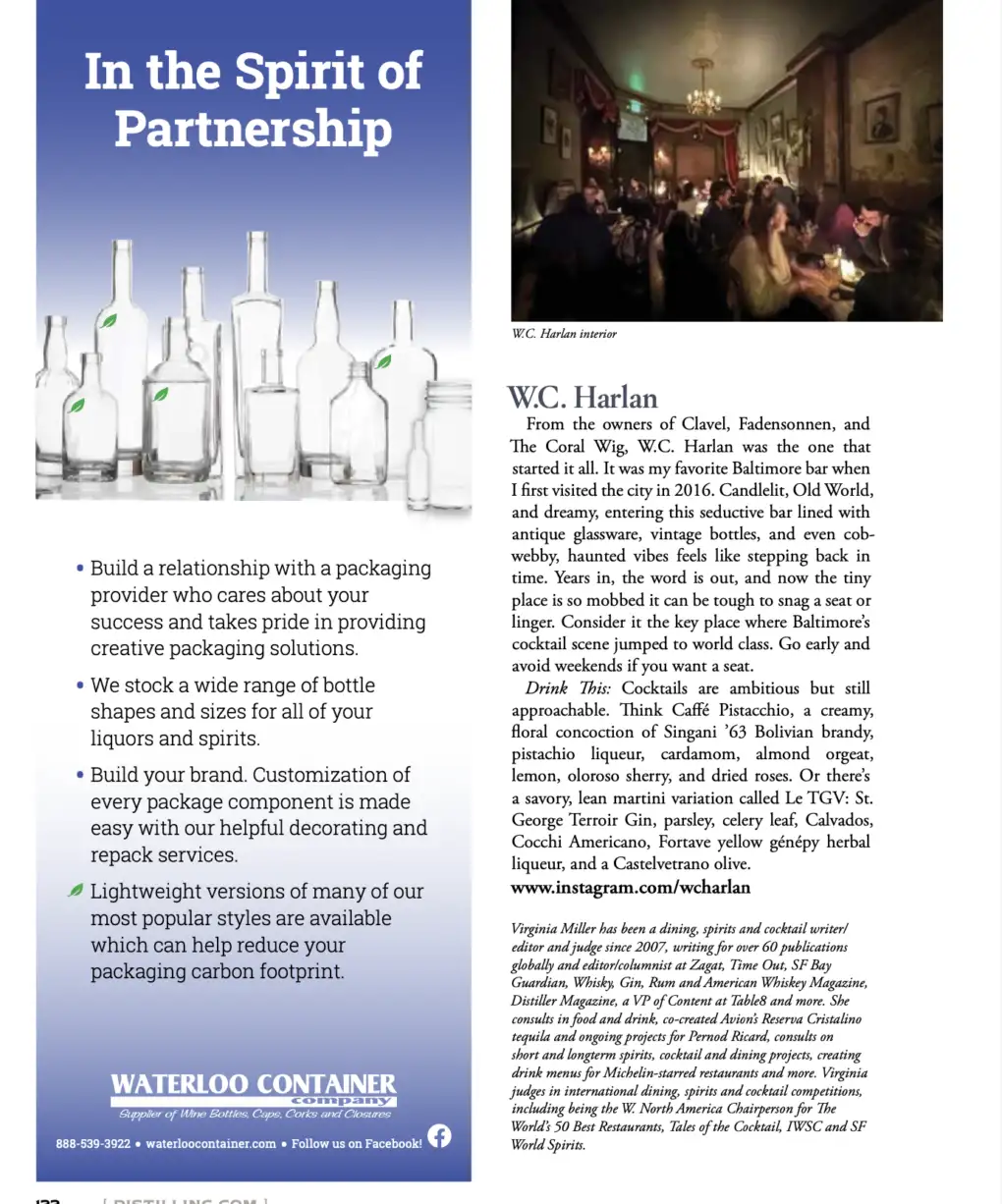 **All my Distiller Magazine articles since 2013 (10 bars, distiller, bar manager interviews in each city/ region — broken down by city below): distilling.com/distillermagazine/author/virginiamiller **