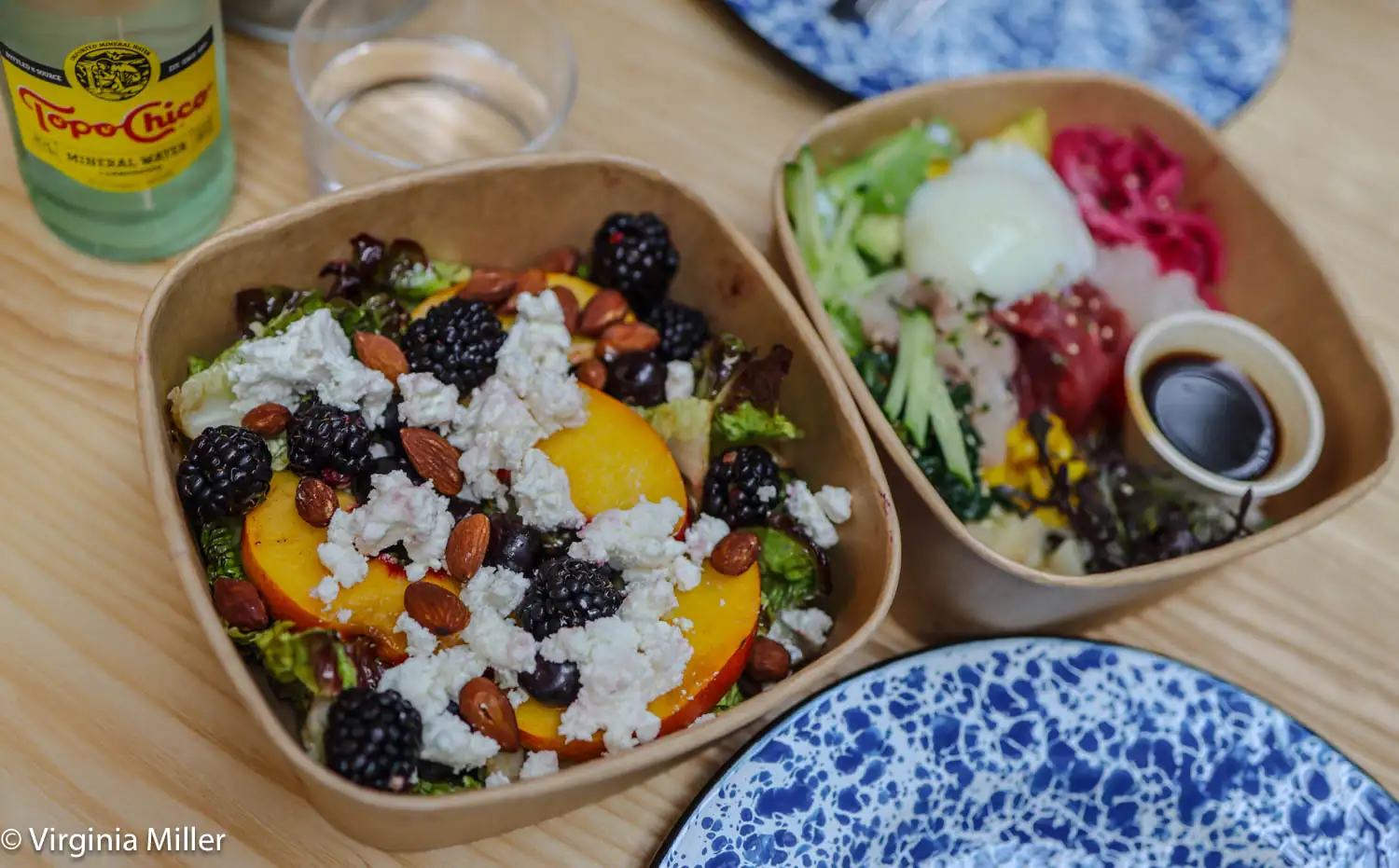 The fish ’n’ chips echoes Nopa’s beloved fried chicken in a ras el hanout spice mix over cumin-dusted Kennebec fries with harissa aioli. There’s an organic tofu vegetarian version of their fried rockfish sandwich and lovely seasonal salads, like a summer salad I loved of organic little gems, sheep’s milk feta, nectarines, blackberries and almonds in honey balsamic vinaigrette.