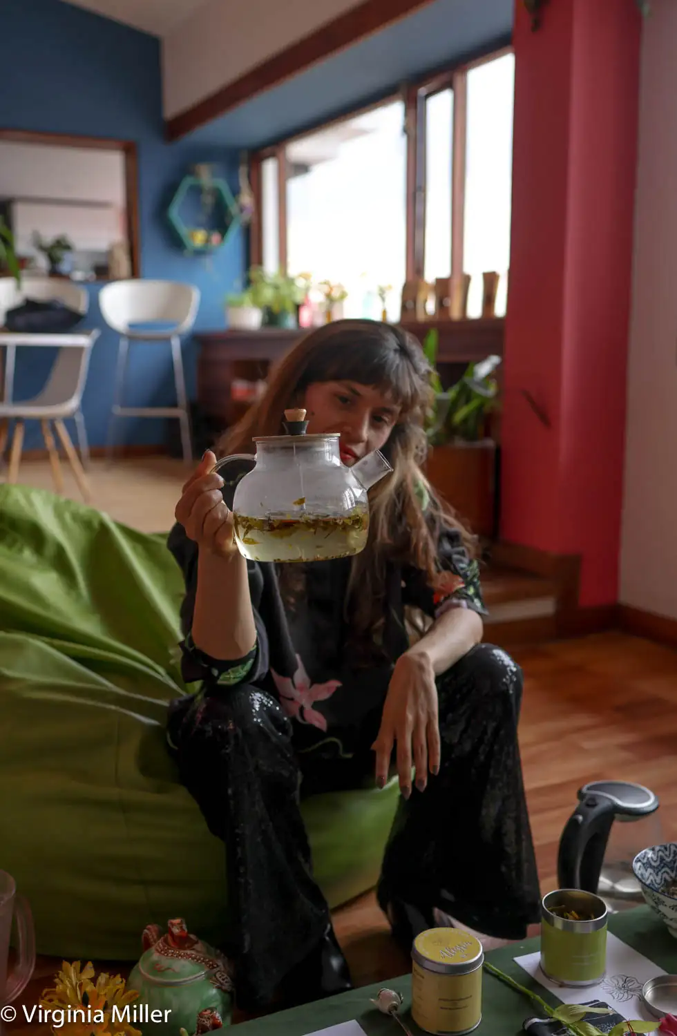 Upon my return early 2025, I was whisked away not long after arrival to the cozy apartment of husband-and-wife Carlos and Laura, dubbed Casa Buen Ayre, translating to “good air” or “fair winds,” the name of Argentina’s capital city, Buenos Aires. Their colorful apartment sported neon pink and midnight blue walls punctuated by Sex Pistols Never Mind the Bollocks album cover, a long floor table surrounded by pillows for tea service and best of all, panoramic views of the city from its hillside perch.